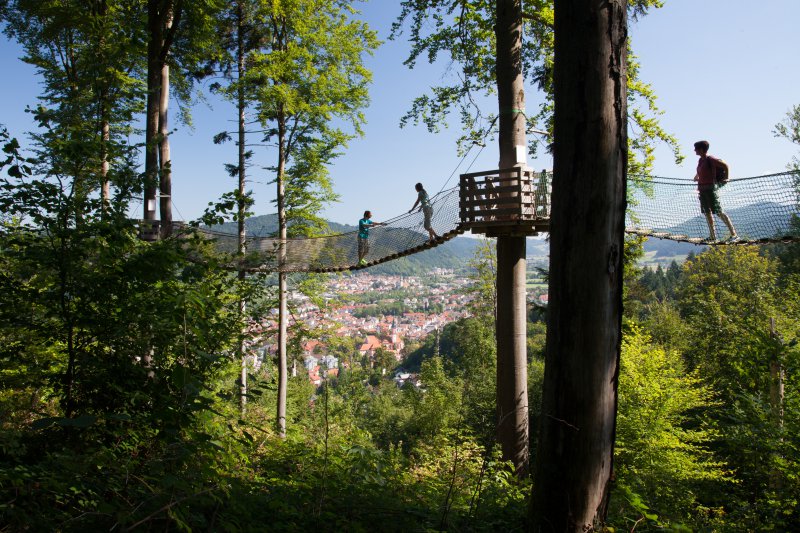 Im ZweiTälerLand erkunden Familien auf den Spuren kniffeliger Rätsel den „Simon’s Pfiffikusweg“. Mit der Geocaching-Tour in Simonswald begeben sie sich auf Schatzsuche mit dem Maskottchen Simon und versuchen sich an den herausfordernden Aufgaben für Groß und Klein. Mit etwas Glück stoßen die Ausflügler mit ihrem GPS-fähigen Gerät dann auf den sagenumwobenen Pfiffikusschatz. Ein weiteres Highlight ist der Naturerlebnispark in Waldkirch mit dem Baumkronenweg und Europas längster Röhrenrutsche. Über den 1.200 Meter langen Sinnesweg geht es mit sanfter Steigung hoch hinaus über die Baumkronen. Hier genießen sie atemraubende Ausblicke auf die umliegenden Schwarzwaldberge, über das Rheintal bis in die Vogesen. Für den Adrenalin-Kick sausen die Abenteurer dann die 190 Meter lange Röhre der Riesenrutsche hinab.