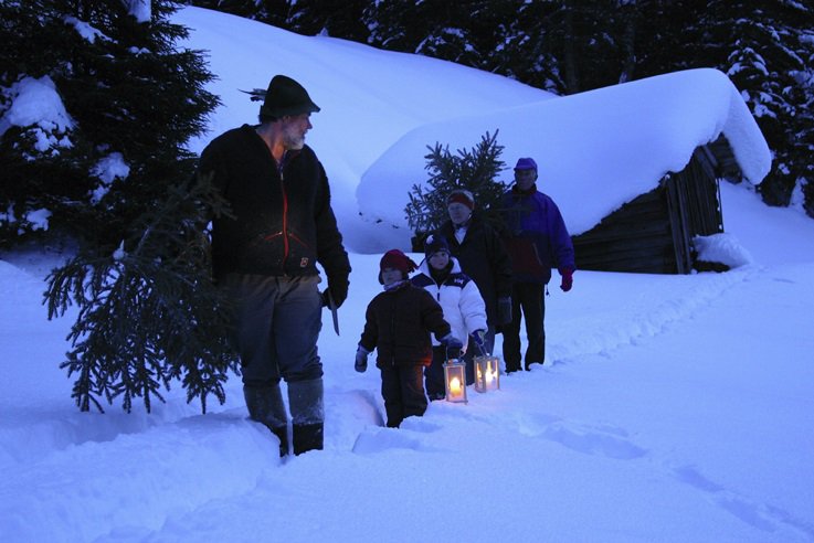 Der frische Duft von Baumharz, stachelige Nadeln und jede Menge weihnachtliche Vorfreuden: Jedes Jahr am 23. Dezember findet in Pfronten das traditionelle Christbaumschlagen statt. Sowohl Einheimische als auch Gäste machen sich an diesem besonderen Tag vor Heilig Abend gemeinsam mit Revierförster Sebastian Baumeister auf den Weg durch die verschneiten Alpenwiesen zu den ausgewiesenen Flächen im Bergwald, wo sie sich unter den vielen wildgewachsenen Bergfichten ihren Weihnachtsbaum aussuchen. Dabei erfüllt dieser Brauch gleichzeitig auch einen guten Zweck, denn er kommt der Landschaftspflege zu Gute. Früher wurden die Alpenweiden intensiv als Mähwiesen genutzt. Dadurch entstanden lichte, offene Flächen zwischen den Bergwäldern, die einen wichtigen Lebensraum für seltene Orchideen-, Enzian- und Insektenarten darstellen und die den Raufußhühnern als Brutstätte dienen. Die Befreiung dieser Flächen von Gestrüpp und jährlich ein paar Fichten hilft bei der Erhaltung dieser Artenvielfalt. Gestärkt mit Kinderpunsch, Glühwein und Lebkuchen genießen große und kleine Christbaumfans die Pfrontener Tradition und stimmen sich auf das Weihnachtsfest ein.