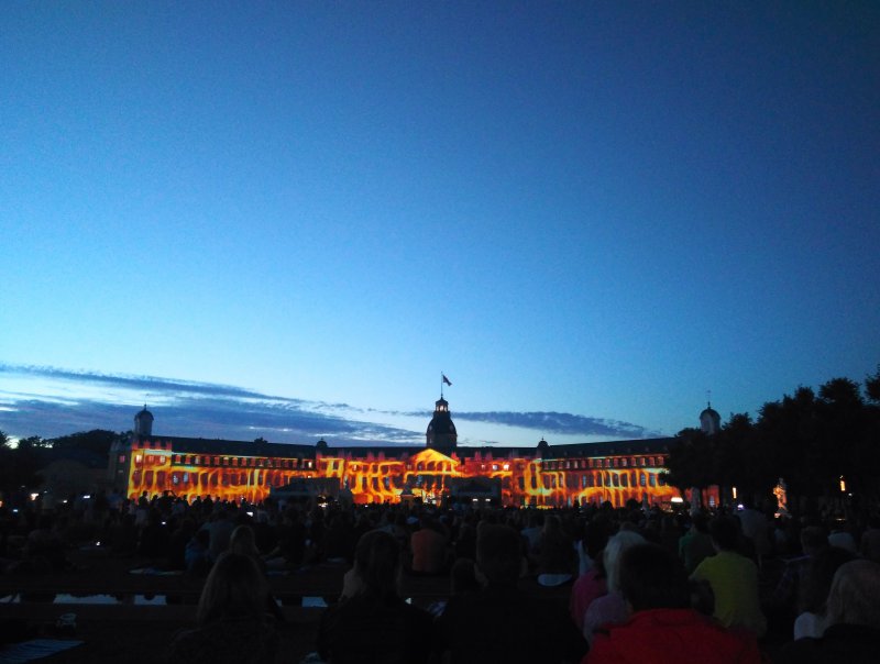 Das ist Pflicht: Die Karlsruher Schlosslichtspiele: Einheimische und Besucher versammeln sich abends auf den Grünflächen vor dem Schloss und bewundern die Farb- und Musikinszenierungen bei leckeren Knabbereien und einem Glas Wein – und das beste: das Spektakel findet jeden Abend vom 3. August bis zum 10. September statt und ist kostenfrei!