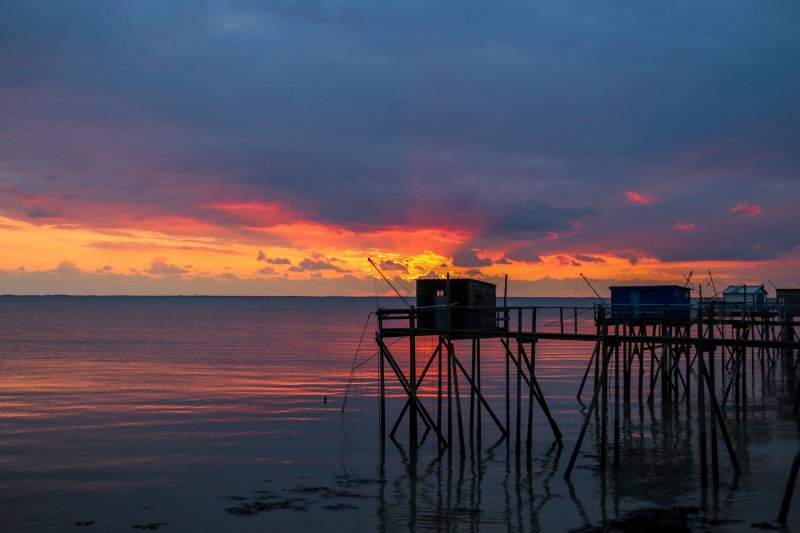 Der Ort Port-des-Barques nahe der Stadt Rochefort trägt den Beinamen „Halbinsel der Austernzüchter“. Charakteristisch für diesen Teil der französischen Atlantikküste sind die traditionellen Fischerhütten auf Stelzen; 400 sogenannte „Carrelets“ zählt allein das Département Charente-Maritime. Mit ihren langen Stegen und den quadratischen Fischernetzen sind sie an Romantik kaum zu übertreffen. Zahlreiche Orte entlang der Küste bieten sich für einen Moment der Zweisamkeit an und insbesondere, wenn die Sonne hinter den Hütten im Meer versinkt, steht der Verlobung nichts mehr im Weg.
