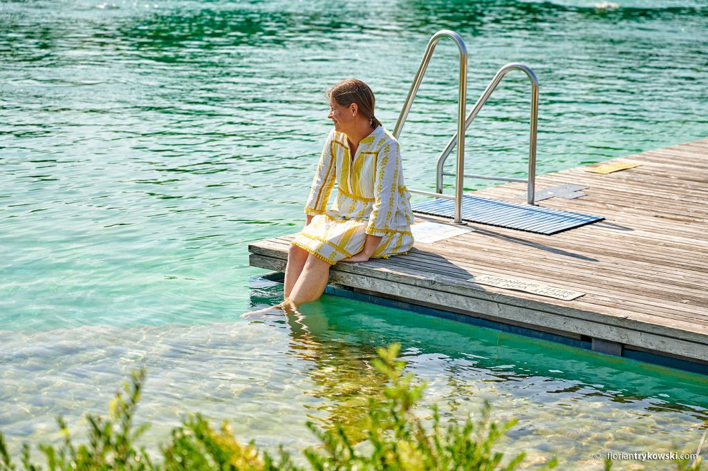 Türkisgrünes Wasser, Sprungfelsen und Schilf – ein Tag im Naturfreibad Fischach fühlt sich wie Urlaub an – das weiß auch Katharina Zott, Brennmeisterin der Destillerie Zott, Herzblut-Mama und Bayerisch-Schwaben-„Gesicht“. Zwischen Obstbränden und Hofleben gönnt auch sie sich mit der Familie im Sommer gerne eine Pause im nahegelegenen Freibad. Während die Kleinen sich im Kinderbecken, auf der Wasserrutsche, in der Grotte oder im Spielbach auspowern, genießen Eltern auf der gepflegten Liegewiese ihre Auszeit. Neben der idyllischen Anlage ist vor allem auch das ökologische Konzept des Freibads für Katharina Zott ausschlaggebend. Dieses wurde nach modernen, umweltschonenden und energiesparenden Gesichtspunkten konzipiert. Durch den Einsatz von Mikroorganismen reinigt sich das Badewasser auf natürliche Weise und Besucher planschen im sauberen Wasser ohne Chlor & Chemie. Ein weiterer Tipp für Naturbade-Fans: Das Wörnitz Flussfreibad des Residenzstädtchens Oettingen im Ries ist eines der letzten Flussbäder in ganz Bayern.
