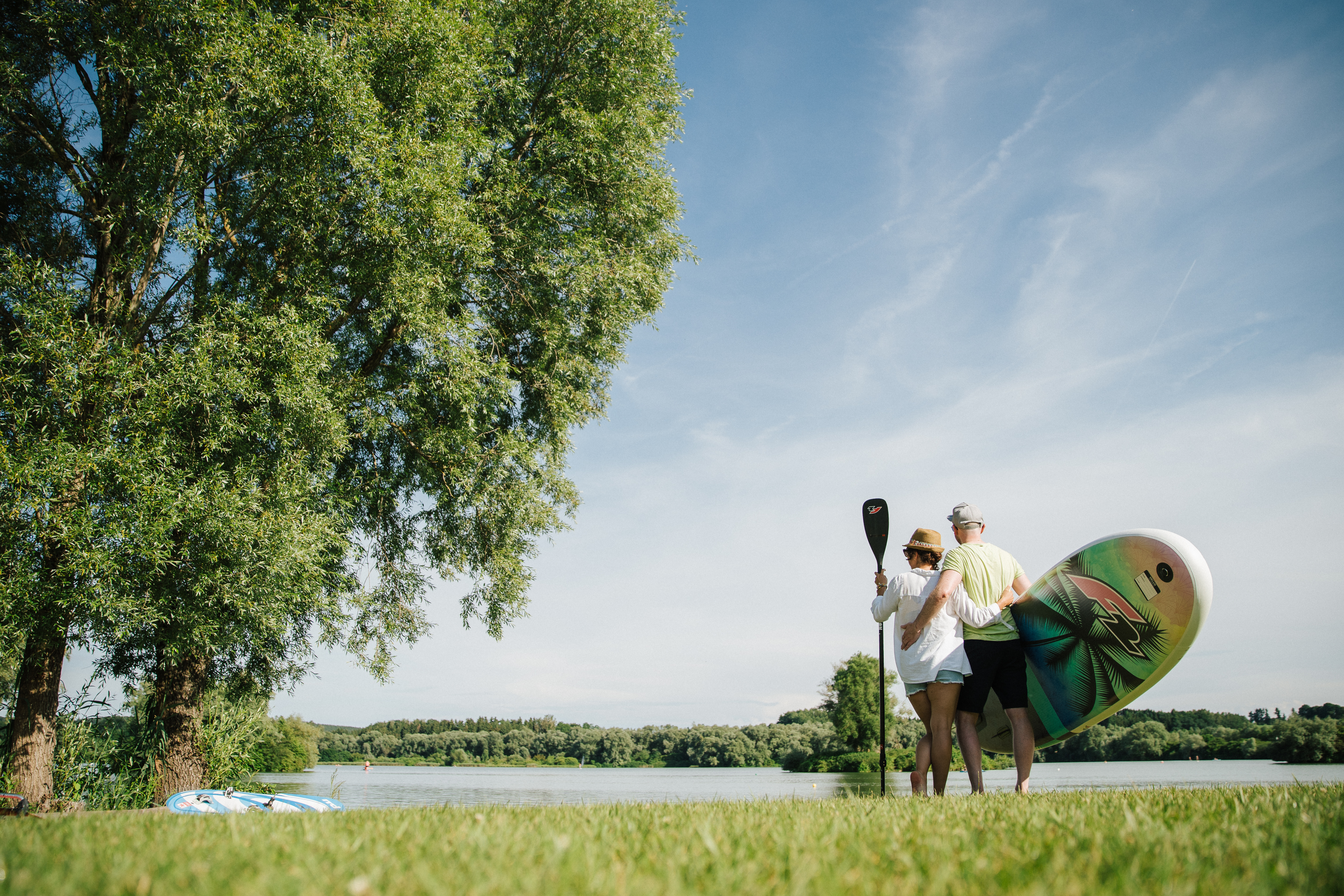 Inmitten des Naherholungsgebiets Oberrieder Weiher lassen Familien auf dem Platz See-Camping Günztal an einem der größten Seen Bayerisch-Schwabens die Seele baumeln. Von einem Verleih für Paddel- und Tretboote bis hin zur Surfschule wählen große und kleine Wasserratten aus abwechslungsreichen Aktivitäten rund ums kühle Nass. Während Camper in Zelt und Wohnmobil schlafen, verbringen Gäste ohne Campingausstattung die Nacht in großen Trekkinghütten, die mit Küche und Toilettenraum sowie Terrasse und Gartenmöbeln ausgestattet sind. Radler starten direkt ab dem Campingplatz auf dem DonauTäler-Radweg, dem Günzradweg oder der Rundtour „See, Seele, Seelig“ in die umliegende Natur. Darüber hinaus lädt das hübsche Krumbach mit dem Hürbener Wasserschloss oder dem schönen Stadtgarten zum Spaziergang oder auch zum Besuch des interessanten Mittelschwäbischen Heimatmuseums ein.
