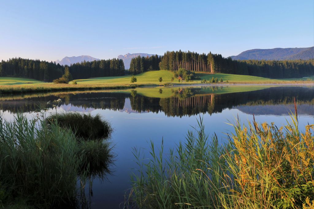Im benachbarten Nesselwang spazieren Erholungssuchende inmitten eines Naturschutzgebietes auf dem vier Kilometer langen Themenweg GE(h)ZEITEN. Fernab vom Alltagstrubel und ohne Zeitnot führt sie die Tour an insgesamt sechs Meditationsstationen vorbei, die zur inneren Einkehr einladen und mit Sprüchen und Übungen zum Nachdenken über Werte und Vorstellungen anregen. So finden Wanderer beispielweise an der Station „Zeit für mich“ ein Naturlabyrinth vor oder probieren sich an Achtsamkeitsübungen an der Balancierstange mit Blick auf den idyllischen Attlesee. Am Uferrand des Badesees machen sie Rast mit Blick auf das klare Wasser und die Allgäuer Berge und lassen die Natur auf sich wirken.