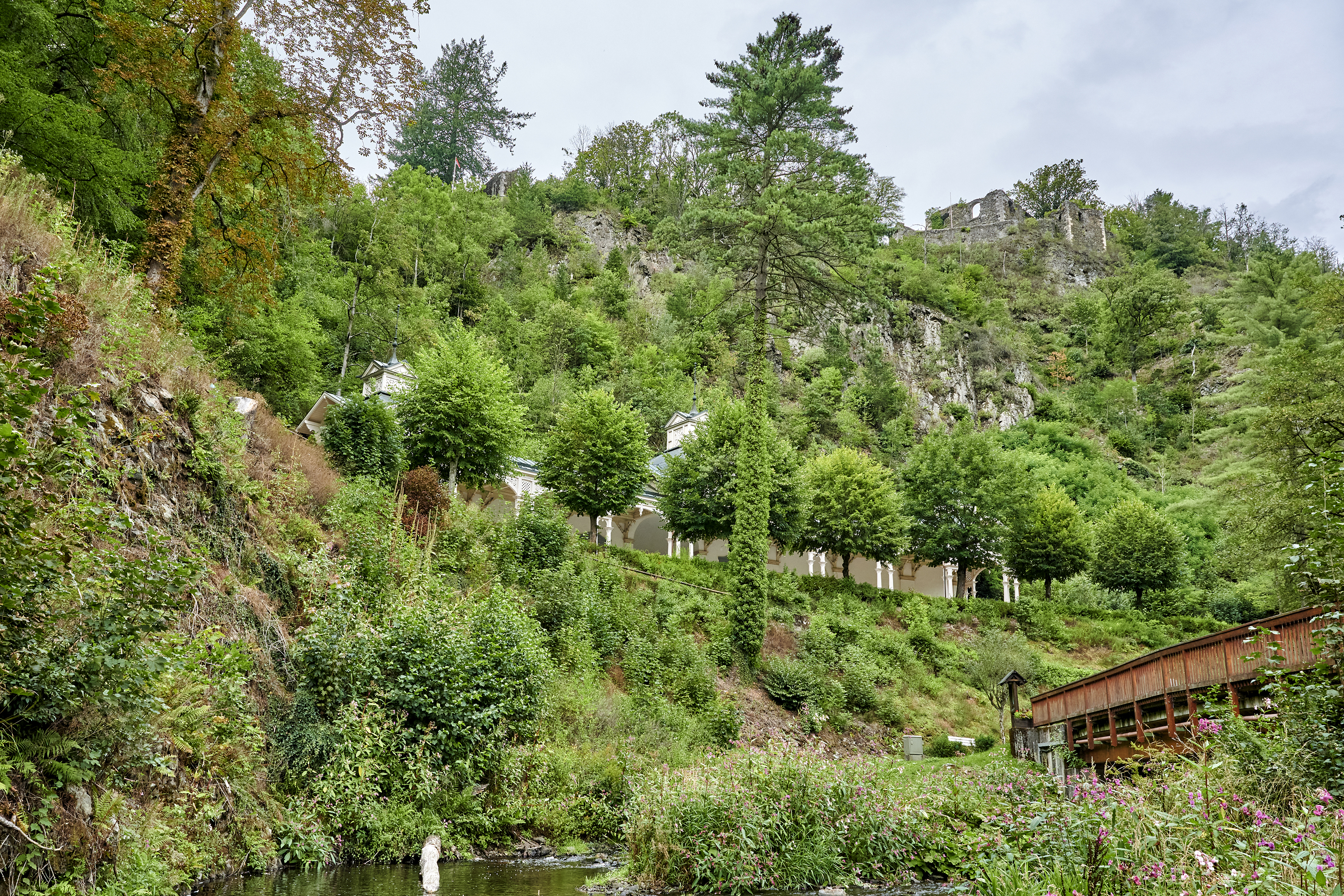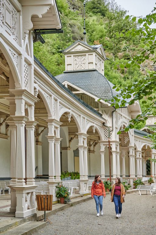 Vor allem im Frühjahr und Sommer begeistert der Kurpark von Bad Berneck mit seiner farbenprächtigen Bepflanzung sowie den sonntäglichen Kolonnaden-Konzerten und lockt Gesundheitsbewusste mit seiner Kneippanlage. Familien kommen bei einer Runde auf dem Minigolfplatz voll auf ihre Kosten oder lassen die Kleinen auf dem Kinderspielplatz toben. Architekturinteressierte bewundern mit zwei historischen Kolonnaden und einem Kioskhäuschen aus der Jahrhundertwende eindrucksvolle Bäderstil-Beispiele.Felsenlabyrinth