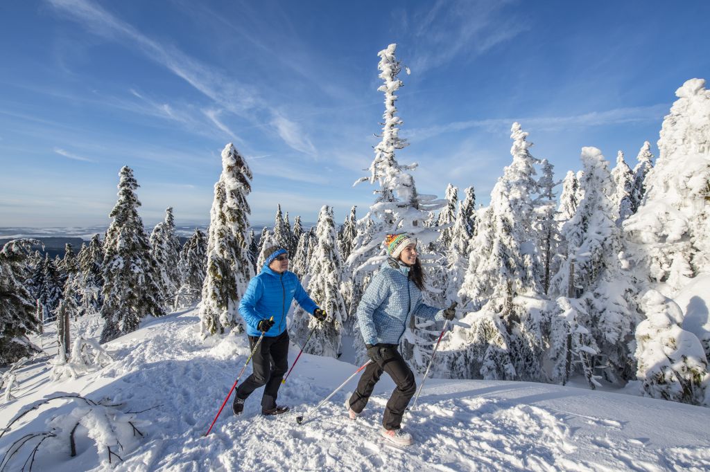 Beschneite Langlaufloipen, Deutschlands erster zertifizierter Winterwanderweg, ökologisch geführte Schneeschuhwanderungen, alpiner Pistenspaß, Skikurse mit Lerngarantie, Rodelspaß und jede Menge Freiraum – als eine der schneesichersten Regionen Deutschlands bietet das Fichtelgebirge zahlreiche und vielseitige Outdoor-Aktivitäten für die kalte Jahreszeit. Unterstützt durch Beschneiungsanlagen sind hier bis zu 100 Schneetage während der Saison keine Seltenheit. So erleben Wintersportler ganz ohne Gedränge das breite Angebot rund um Ochsenkopf, Schneeberg & Co mit modernen Skiliften, 280 Kilometern DSV-klassifizierten Loipen, Nordbayerns längsten Abfahrtstrecken sowie einem flächendeckenden Winterwanderwege- und Schneeschuhpfade-Netz.