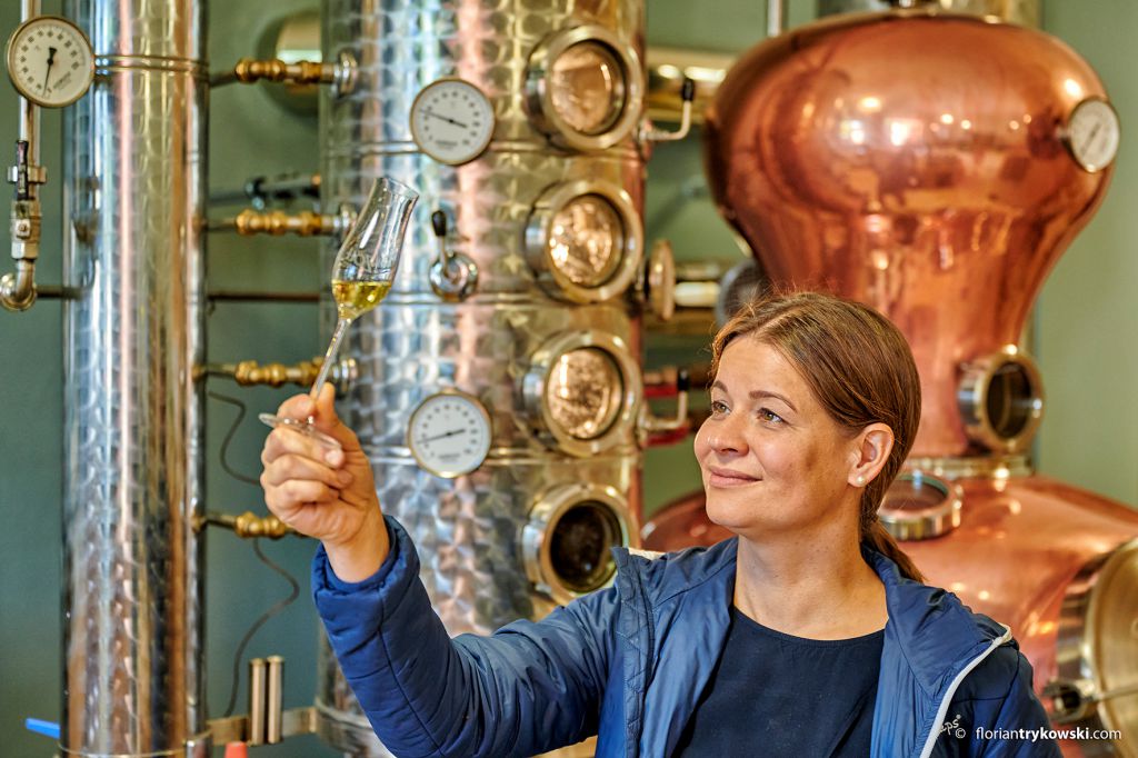 Seit 2003 besitzt die Familie Zott die Brennrechte auf ihrem Hof in Ustersbach im Landkreis Augsburg. Katharina Zott, Doktorin der Önologie mit Studium in Kalifornien und Doktorarbeit in Bordeaux, führt seit 2010 die Destillerie. Voller Hingabe veredelt sie leckere Birnen, Äpfel, Zwetschgen, Sauerkirschen und Co., die ihr Bruder auf der Obstplantage anbaut, die seit Generationen im Familienbesitz ist. Katharinas Kreationen haben bereits viele internationale Preise erhalten und sind mittlerweile weltweit bekannt. Die Edelobstbrände sowie Liköre in den verschiedensten Geschmacksrichtungen gibt es sowohl in Gasthäusern der Region als auch im Hofladen zu kaufen. Darüber hinaus bietet die Familie Gin-Seminare und Brennerei-Workshops an. Und wenn Katharina dann doch mal Abstand braucht, zieht es die Zweifachmama in den umliegenden Naturpark Augsburg – Westliche Wälder, der zu den wertvollsten Naturräumen der Region gehört. Für sie bedeutet Bayerisch-Schwaben Heimat und eine authentische Region mit vielen geheimen Ecken.