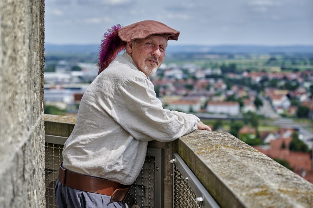 Hoch und runter, 1.400 Stufen am Tag – Horst Lenner, auch „Hottle“, genannt, ist einer der zwei Haupttürmer auf dem 90 Meter hohen Kirchturm „Daniel“ in Nördlingen. Seit 2010 übt der heimatverbundene Nördlinger diesen heutzutage nur noch seltenen, mittelalterlichen Beruf auf dem Wahrzeichen der Stadt aus. Und es ist nicht nur die durch die vielen Treppenstufen trainierte Fitness, die den 70-jährigen zu seiner Arbeit motiviert, sondern auch die Erfüllung eines Kindheitstraums. Während einst die Hauptaufgabe eines Türmers darin bestand, vom höchsten Punkt die Stadtbewohner vor Gefahren zu warnen, fungiert Horst heute hauptsächlich als Geschichtenerzähler für die zahlreichen Touristen oder Schulklassen und hegt die alte Tradition des Türmerrufs „So G’sell so“, den er und seine Kollegen jede Nacht mindestens 20 Mal von der Aussichtsplattform des Turms in die Altstadt hinausrufen. Wenn er nicht gerade in der Natur des angrenzenden Nördlinger Ries‘ unterwegs ist, finden Besucher ihn auf dem Daniel zusammen mit der Turmkatze Wendelstein, die auf dem Baudenkmal lebt.