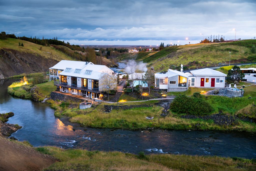 Ein Aufenthalt im Hotel Frost og Fúni in Hveragerði ist besonders an frischen Wintertagen ein großartiges Erlebnis. Die hauseigenen Hot Pots gewähren einen herrlichen Blick auf den Fluss und die winterliche Landschaft – und mit etwas Glück auch auf die Nordlichter. Die Umgebung bietet unzählige Möglichkeiten für kurze Ausflüge: der Geysir Strokkur, der vereiste und majestätische Wasserfall Gullfoss oder ein kurzer Ritt auf einem Islandpferd durch die Winterlandschaft.