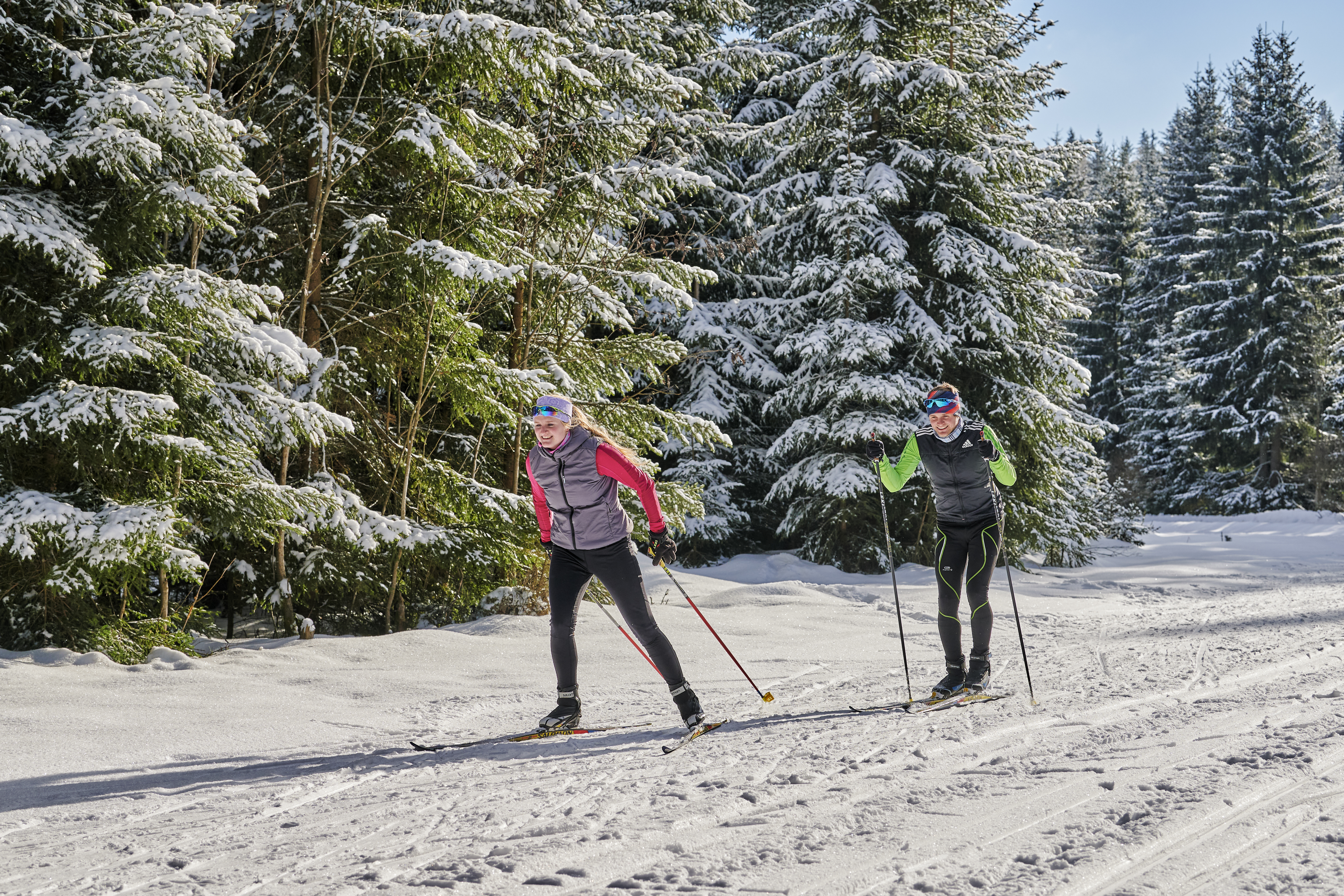 Skilanglauf ist im Vergleich zum alpinen Skifahren kostengünstig und einfach zu lernen. Es lässt sich zeitlich gut einteilen, können Sportler doch den ganzen Tag auf den Langlaufskiern verbringen oder ähnlich wie beim Joggen mal schnell eine Runde drehen. Das Fichtelgebirge eignet sich hervorragend für diesen Wintersport, denn hier gibt es 255 Kilometer an DSV-klassifizierten Loipen, verteilt auf vier Langlaufgebiete. Ohne eine Loipe doppelt zu fahren, legen Sportbegeisterte schon mal 50 Kilometer an einem Tag auf ihren Skiern zurück – noch dazu in gesundem Heilklima. Im Nordic Parc stehen bes-tens präparierte Loipen, Nachtloipen, eine beschneite Skirollerbahn und ein Biathlonstadion für Lang-lauf im klassischen Stil oder in der Skating-Technik zur Verfügung. Als schneesicher gilt die 3,6 Kilo-meter lange Gipfelloipe auf dem Ochsenkopf mit beeindruckendem Weitblick sowie die technisch beschneite Runde in Neubau an der Bleaml-Alm, dem Langlauf- und Biathlon-Zentrum des Fichtelge-birges. Die untere Ringloipe verbindet alle Orte rund um den Ochsenkopf und verläuft in Höhenlagen zwischen 748 und 827 Metern. Wer diesen gelenkschonenden Wintersport erlernen möchte, ist beim mehrfachen Bayerischen und Deutschen Meister, WM- und Olympiateilnehmer Edgar Eckert bestens aufgehoben, denn als staatlich geprüfter Skilanglauf-Lehrer gibt der gebürtige Fichtelgebirgler nach wie vor Unterricht. Auch bei den Skischulen Nordbayern und Hottenroth stehen Kurse sowohl für Ein-steiger und Fortgeschrittene als auch für Könner, die ihre Technik optimieren möchten, auf dem Pro-gramm.Die passende Unterkunft für den Winterurlaub im Fichtelgebirge ist unter www.fichtelgebirge.bayern/uebernachten zu finden. Tagesverbundkarten für die Skigebiete Ochsen-kopf und Klausenlifte in Mehlmeisel gibt es für 24 Euro für Erwachsene. Wer Langlaufen möchte zahlt lediglich 3 Euro für das Tagesparkticket.