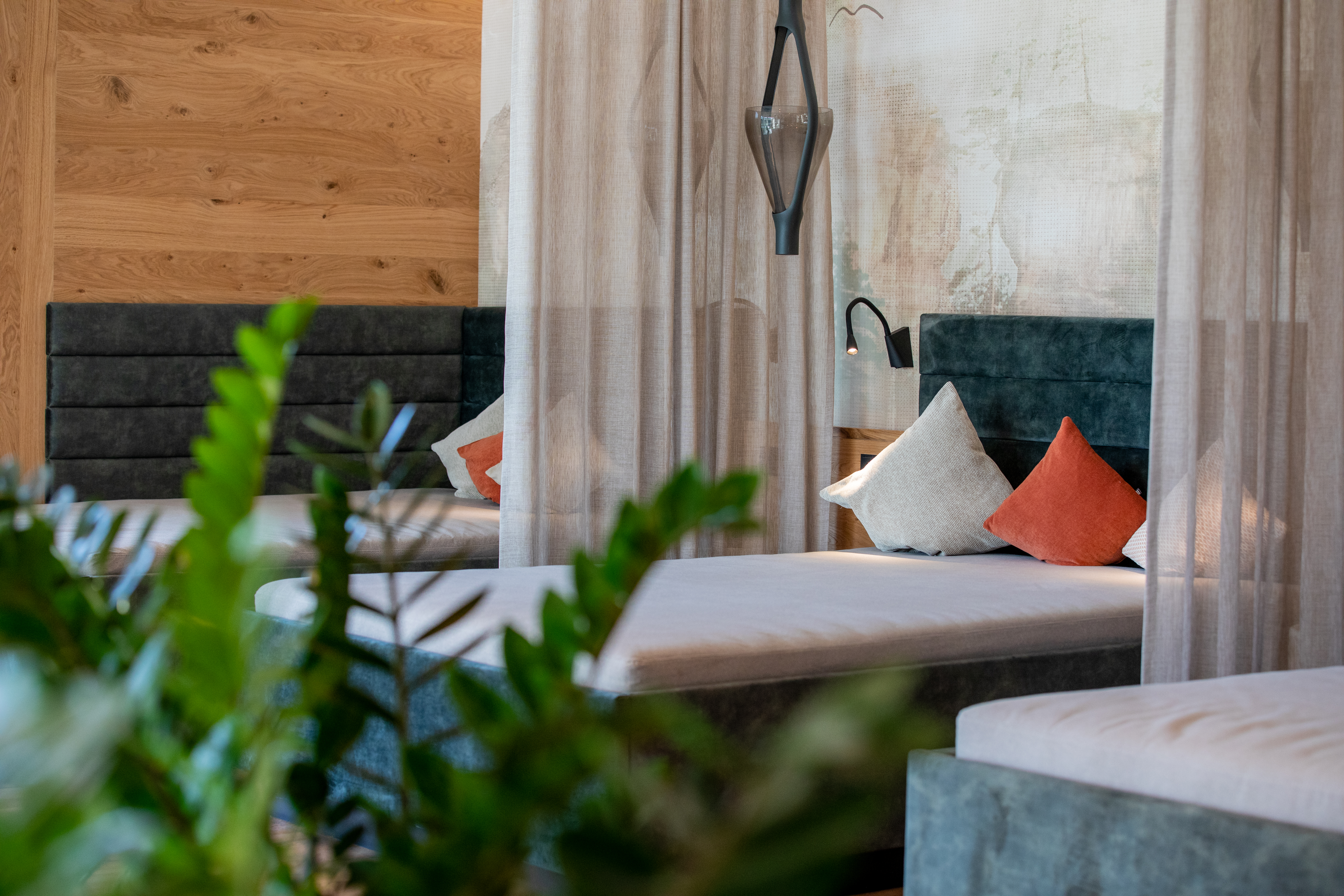 Im kommenden Winter erwarten Paare und Familien in dem neu ausgebauten Gartenflügel weitere großräumige und luxuriöse Zimmer. Neben den 14 Doppelzimmer mit 49 Quadratmetern, genießen Gäste in fünf Spa-Suiten mit jeweils 82 Quadratmetern und in einer 97 Quadratmeter großen Family Spa-Suite jede Menge Freiraum. Wie die bereits bestehenden Penthouse-Suiten sind alle mit eigenem Whirlpool auf dem Balkon oder der überdachten Terrasse sowie einer eigenen, finnischen Sauna ausgestattet, die auch als Infrarot-Kabine genutzt werden kann.