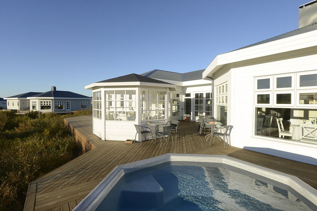 Nur 45 Autominuten von Reykjavík und rund 90 Autominuten vom internationalen Flughafen in Keflavík entfernt, befindet sich das Hotelresort Grimsborgir im Süden Islands direkt am berühmten Golden Circle. „Das Hotel in einsamer Lage besteht aus einem Hauptgebäude mit einem erstklassigen Restaurant sowie mehreren ringförmig angeordneten Gästehäusern. Jedes Gebäude hat seinen eigenen Hot Pot und jedes Zimmer seine eigene Terrasse. Hier können die Gäste nach einem Tagesausflug in die Umgebung den Abend bei einem Glas Champagner in vollkommener Ruhe ausklingen lassen und mit etwas Glück bei klarem Himmel den Ausblick auf die Nordlichter genießen“, so Susan Stefanski, Geschäftsführerin der Katla Travel GmbH.