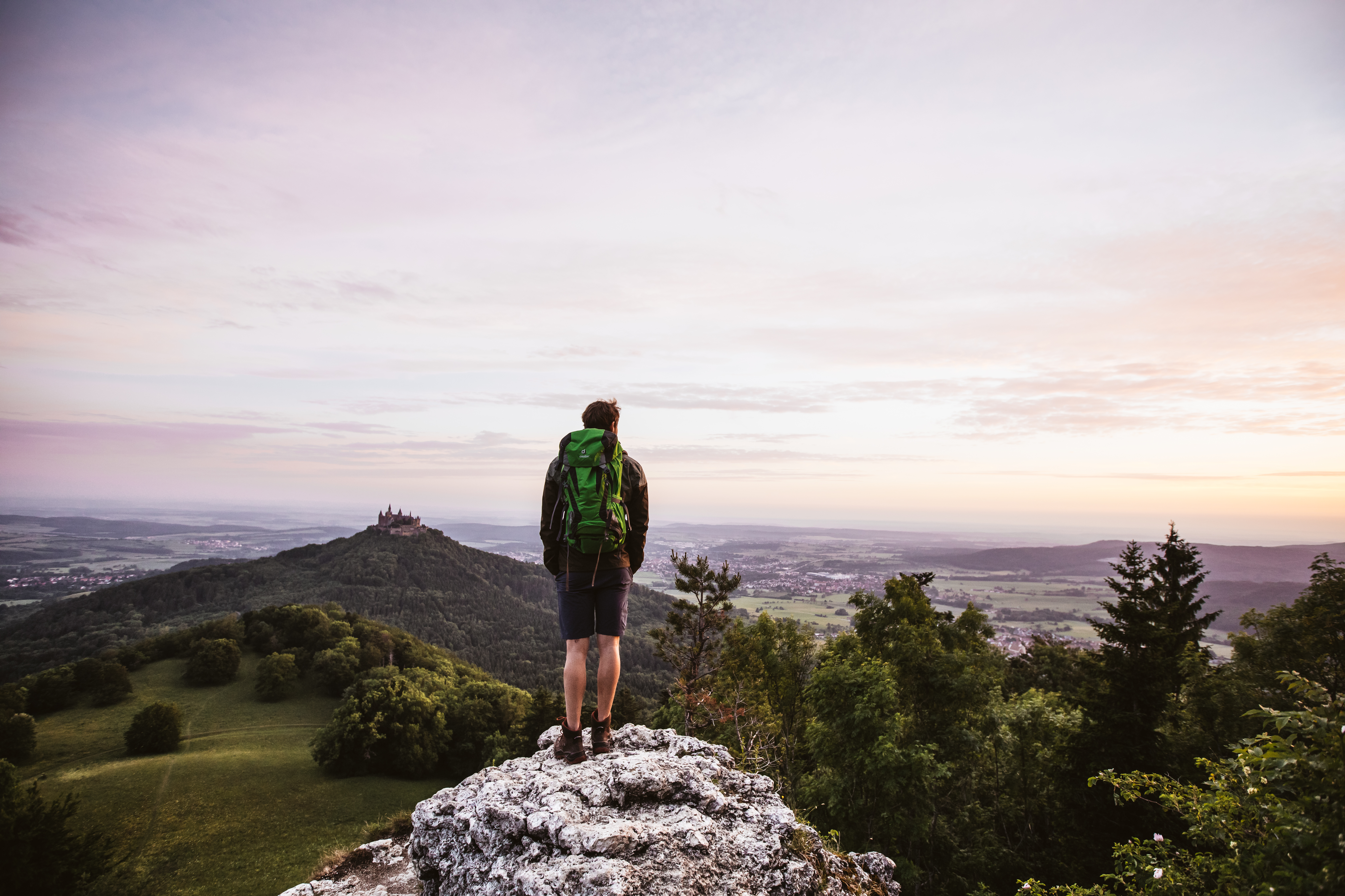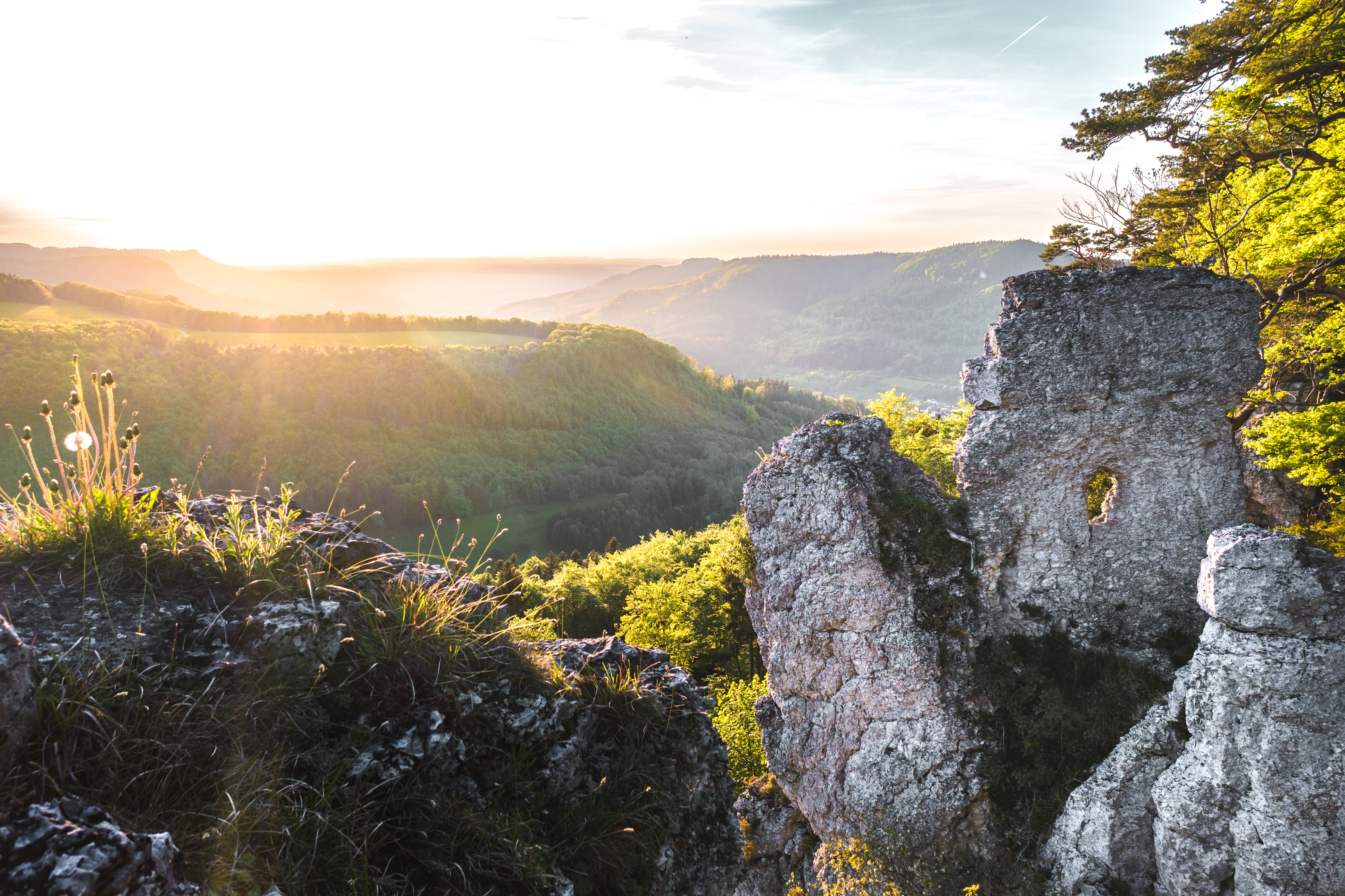 Der Küchenfels bei Albstadt-Lautlingen wirkt wie eine natürliche Bühne über dem Tal. Mitten im Felsplateau steht eine mächtige Felsformation, die sich perfekt als Vordergrundmotiv eignet. Besonders stimmungsvoll wird es bei Sonnenuntergang, wenn die Felskanten im Abendlicht glühen. Der Spot liegt an einer abwechslungsreichen Wanderstrecke und ist besonders für ambitionierte Fußfreudige geeignet, die zudem genügend Zeit für den Auf- und Abstieg haben.5. Schlossfelsen – Stadt und Natur im Blick