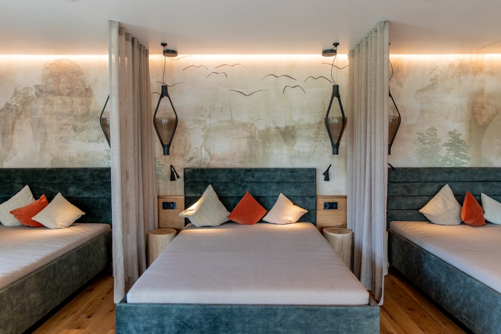 Durch die Vergrößerung des Grundstücks von 11.000 Quadratmetern auf 55.000 Quadratmetern schafft das PFLAZBLICK WALD SPA RESORT neuen Platz und viel Freiraum für die Gäste. Der Ausbau des Gartenparadieses mit einem neuen 38 Meterlangen Badeteich schaffen neue naturnahe Rückzugsorte zum Erholen. In den 16 neuen, großzügigen und modernen Doppelzimmern und Suiten, die alle über einen Balkon oder eine Terrasse mit Garten- und Waldblick verfügen, genießen Familien, Freunde und Paare viel Platz und Komfort zur individuellen Entfaltung. Auf 70 Quadratmetern verteilt auf zwei Zimmer mit Wohnbereich, großem Badezimmer und Balkon oder Dachterrasse verbringen Familien mit bis zu vier Personen in der Familysuite „Lämmerfels“ wertvolle Zeit zusammen. Eine exklusive Auszeit erleben Gäste in den neuen Penthouse-Suiten „Traubennestl“. Neben einem luxuriösen Wohnbereich mit Kamin befindet sich auf der eigenen Dachterrasse mit Blick ins Dahner Tal ein privater Spa samt großer Sauna, Infrarotkabine und einem Whirlpool.