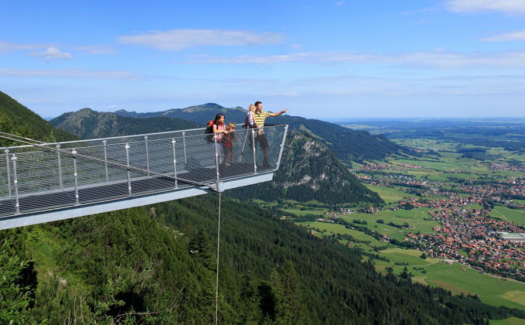 Am Pfrontener Hausberg Breitenberg oberhalb der Bergstation erhalten Abenteurer auf dem über den Felsrand ragenden, 1.478 Meter hohen Aussichtsteg einen wunderbaren Weitblick auf das Pfrontener Tal und die Voralpenlandschaft. Von dort aus lassen sich auch die nächsten Wanderziele erspähen, denn das „Erste europäische Wanderdorf Pfronten“ gilt auch als das Tor in die Tiroler und Allgäuer Bergwelt. Zahlreiche Wanderwege führen vom Steg aus zur Hochalphütte, zur Ostlerhütte auf dem Breitenberggipfel und weiter bis ins angrenzende Österreich. www.pfronten.de