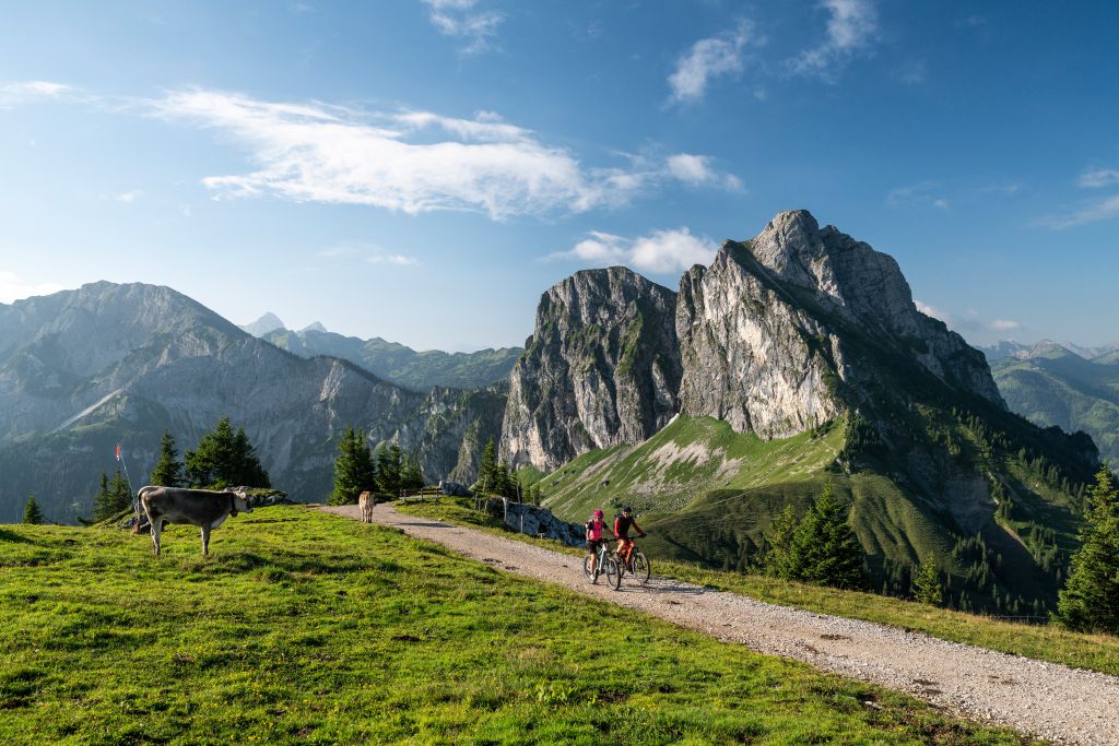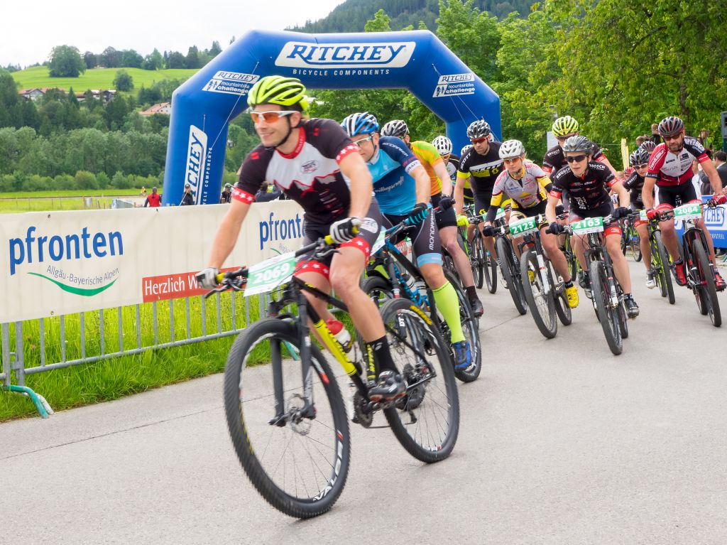 Rasante Abfahrten und knackige Anstiege: mit dem 1.838 Meter hohen Breitenberg, dem Edelsberg und den zahlreichen benachbarten Bergen wie die Alpspitze ist Pfronten eine wahre Spielwiese für konditionierte Mountainbiker. So umrunden sie etwa auf der hochalpinen, anspruchsvollen Breitenbergrunde auf rund 23 Kilometern den Pfrontener Hausberg. Dabei geht es durch das idyllische Achtal, über den nördlichen Sattel des Aggensteins und über kurvige Serpentinen und saftige Bergwiesen durch das Plattenbachtal. Zur Stärkung lohnt sich ein Abstecher auf der Ostlerhütte, die sich auf dem Breitenbergplateau befindet. Auf rund 35 Kilometern führt die leichte, länderübergreifende 3-Täler-Tour Mountainbiker durch das Vilstal, das Achtal und das Tannheimer Tal in Tirol. Ein Highlight für ambitionierte Biker ist der MTB-Marathon Pfronten, der zum 17. Mal dieses Jahr am 27. Juni 2020 stattfindet. Teilnehmer wählen zwischen der 51 Kilometer langen Marathonroute, dem 76 Kilometer langen Extrem-Marathon und der 26 Kilometer langen Kurzstrecke. Zusätzlich findet eine Klapprad WM zur Hochalphütte statt. Im Wechselspiel von Steigung und Gefälle verläuft die Strecke durch die Täler und hinauf auf Breitenberg, Alpspitze & Co. Die MTB-Marathon-Strecke können Biker das ganze Jahr über befahren.