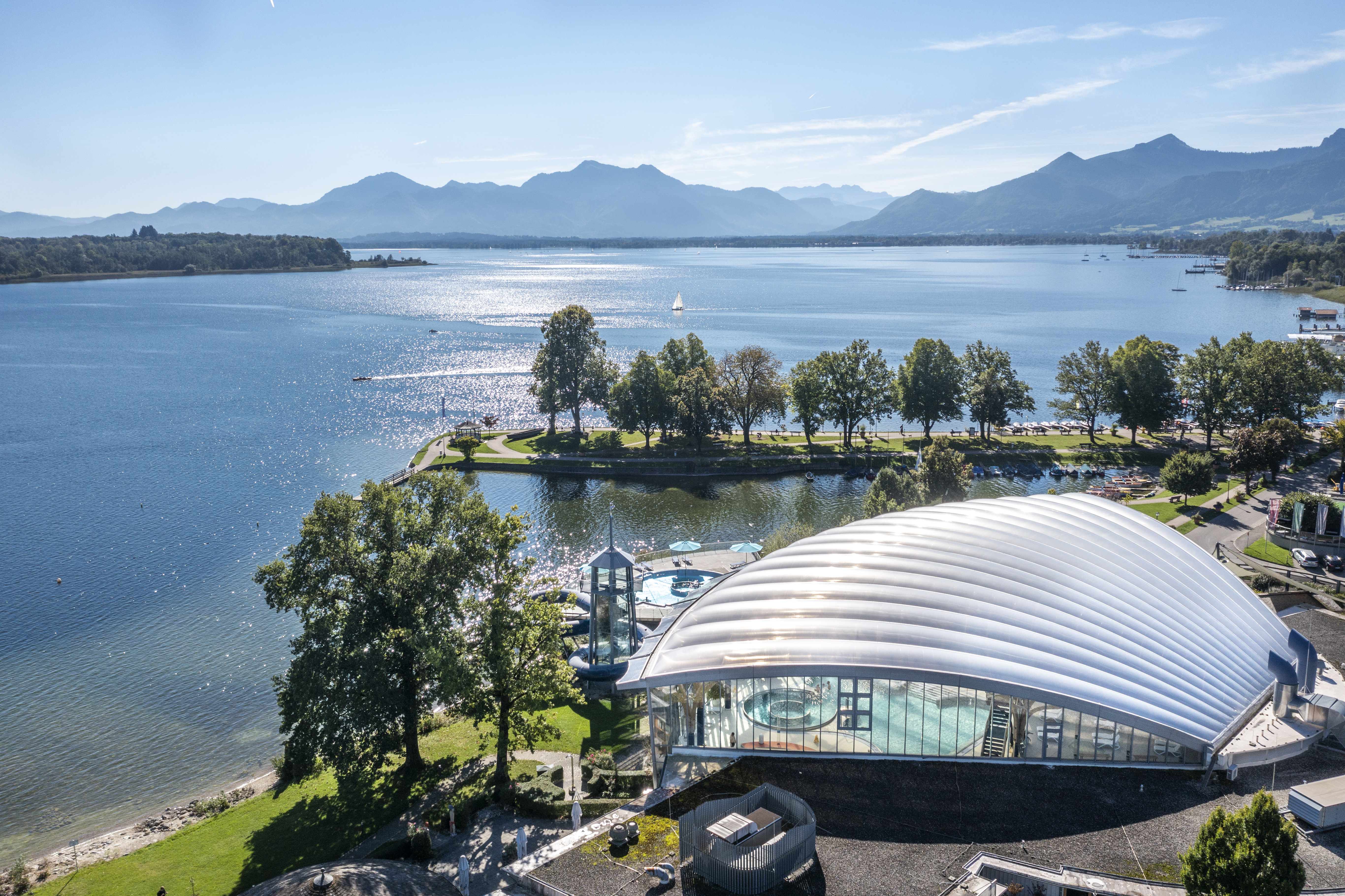 Sollte das Wetter einmal nicht mitspielen, müssen Urlauber in Prien nicht auf Bewegung im und um das Wasser verzichten: Direkt an der Uferpromenade des Sees ist das PRIENAVERA Erlebnisbad gelegen. Bei der Aussicht auf das Schloss Herrenchiemsee schwimmen sich die Bahnen hier fast wie von selbst. Spezielle Thementage und Kurse wie die Meerjungfrauen-Schwimmschule oder ein Aqua-Fit-Kurs treiben zudem auch bei trübem Wetter den Puls nach oben. Für die Jüngeren ist die 70 Meter lange Röhrenrutsche „Blackhole“ das Highlight. Neben dem Rutschspaß eröffnet sich den Kleinen auf dem Weg nach oben ein fantastischer Ausblick auf den Chiemsee sowie auf die Chiemgauer Berglandschaft. Nach so viel sportlicher Betätigung darf auch die Entspannung nicht zu kurz kommen: Ausgedehnte Wellnessbecken, wohltuende Sprudelmassagen und dampfende Saunaaufgüsse runden den Tag für alle Badeliebhaber ab.
