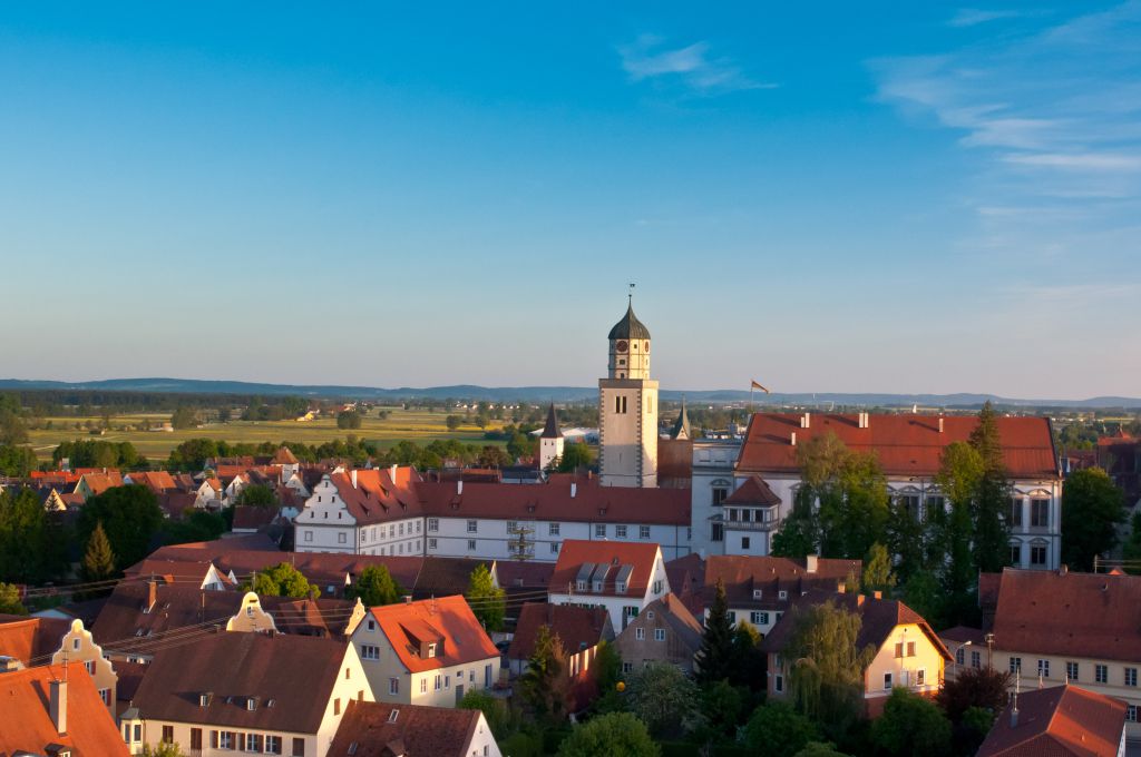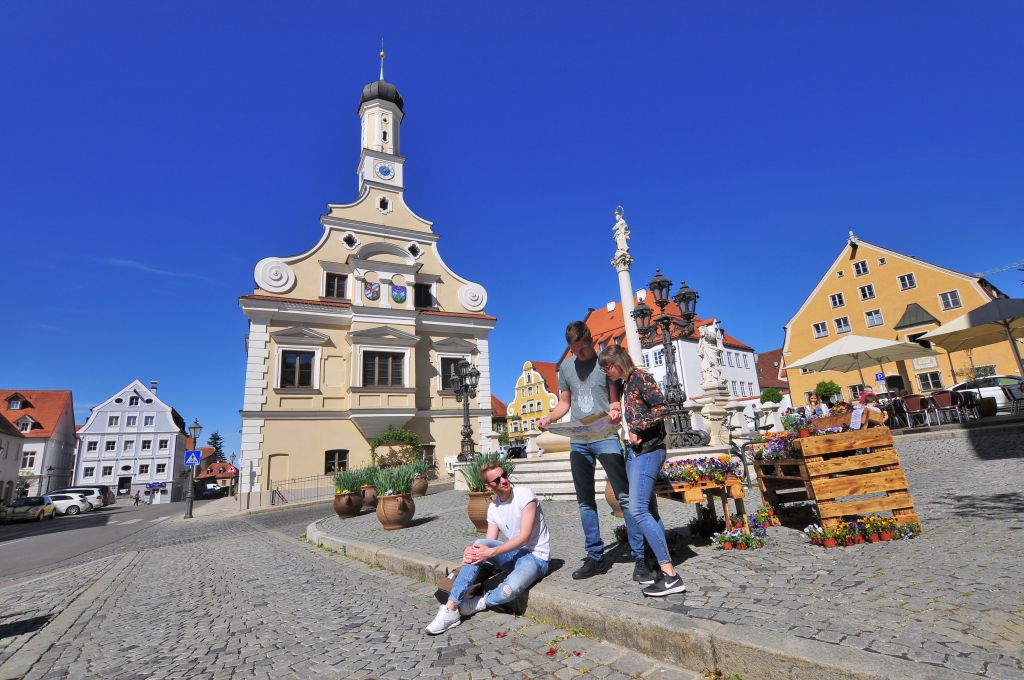Copyright der Bilder: Oettingen mit Riesblick © Werner Rensing, Blick auf Lauingen vom Donauufer © Fouad Vollmer, Marienplatz in Friedberg © Stadt Friedberg