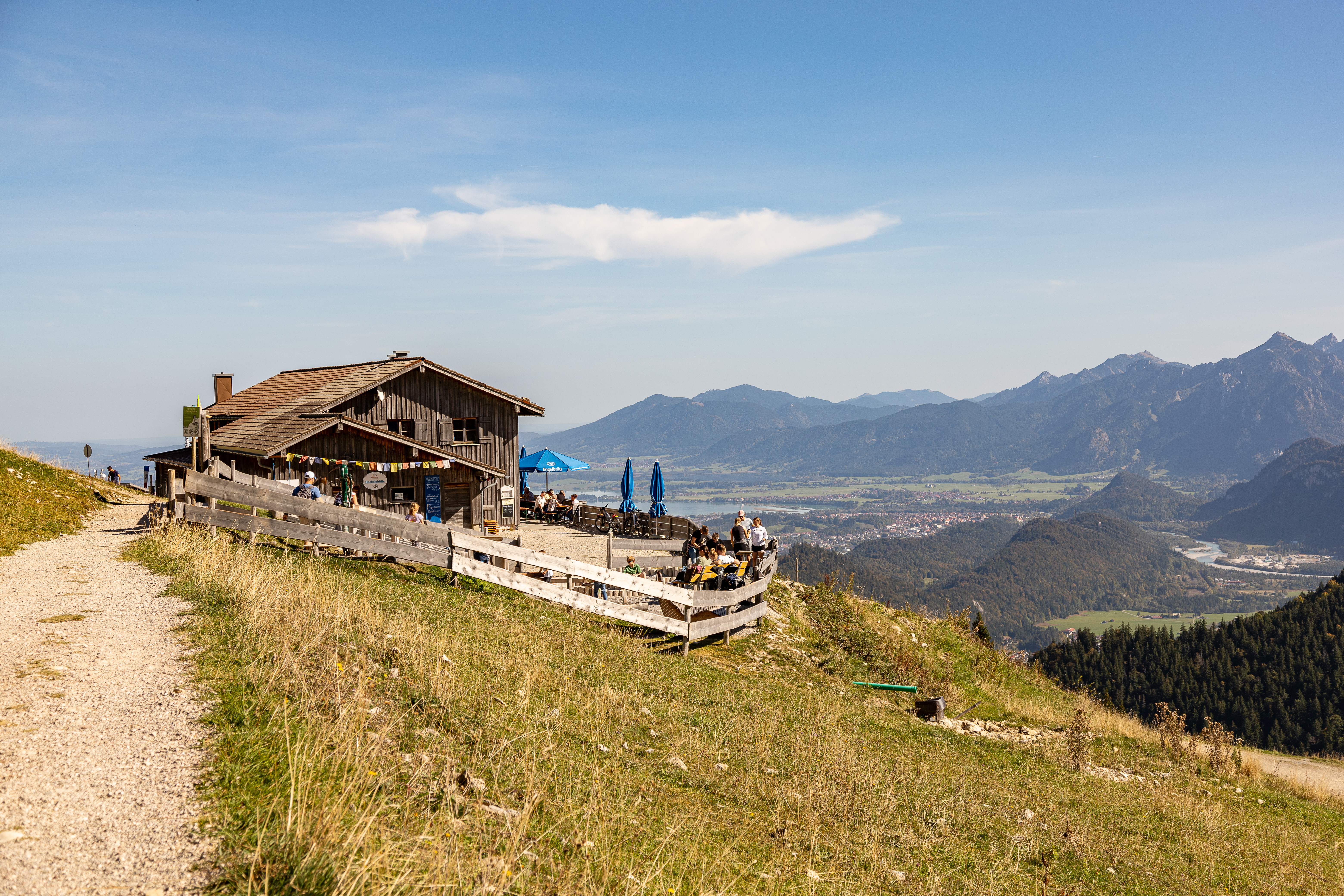 Auf über 1.500 Metern liegt die Hochalphütte nur rund 200 Meter oberhalb der Bergstation der Breitenbergbahn. Auf den Hausberg von Pfronten kommen also auch weniger geübte Wanderer. Wer lieber selber geht, kann den steilen Weg wählen, der entlang der Bergbahn in knapp zwei Stunden hinaufführt, oder den schöneren, dafür rund 30 Minuten längeren Weg durch die Reichenbachklamm vorbei an Gumpen und Wasserfällen. Die Hochalphütte ist ein beliebtes Ausflugsziel und bietet von der großen Sonnenterrasse einen schönen Blick hinunter ins Ostallgäu und in die Gipfelwelt des Tannheimer Tals. Insgesamt 20 Schlafplätze in Mehrbettzimmern bietet die Hochalphütte für all jene, die einmal eine Hüttenübernachtung erleben oder gleich in der Früh von hier aus auf eine längere Bergtour aufbrechen möchten. Egal welche Motivation man hat, am Abend und Morgen verwöhnt Hüttenwirt Ang Kami Lama aus Nepal seine Übernachtungsgäste mit klassischen Hüttenspezialitäten und typisch nepalesischen Speisen, wie etwa Sharpa Momo (gefüllte Teigtaschen) oder einem Dal Bhat (ein Gericht aus Linsen und Reis). hochalphuette.com