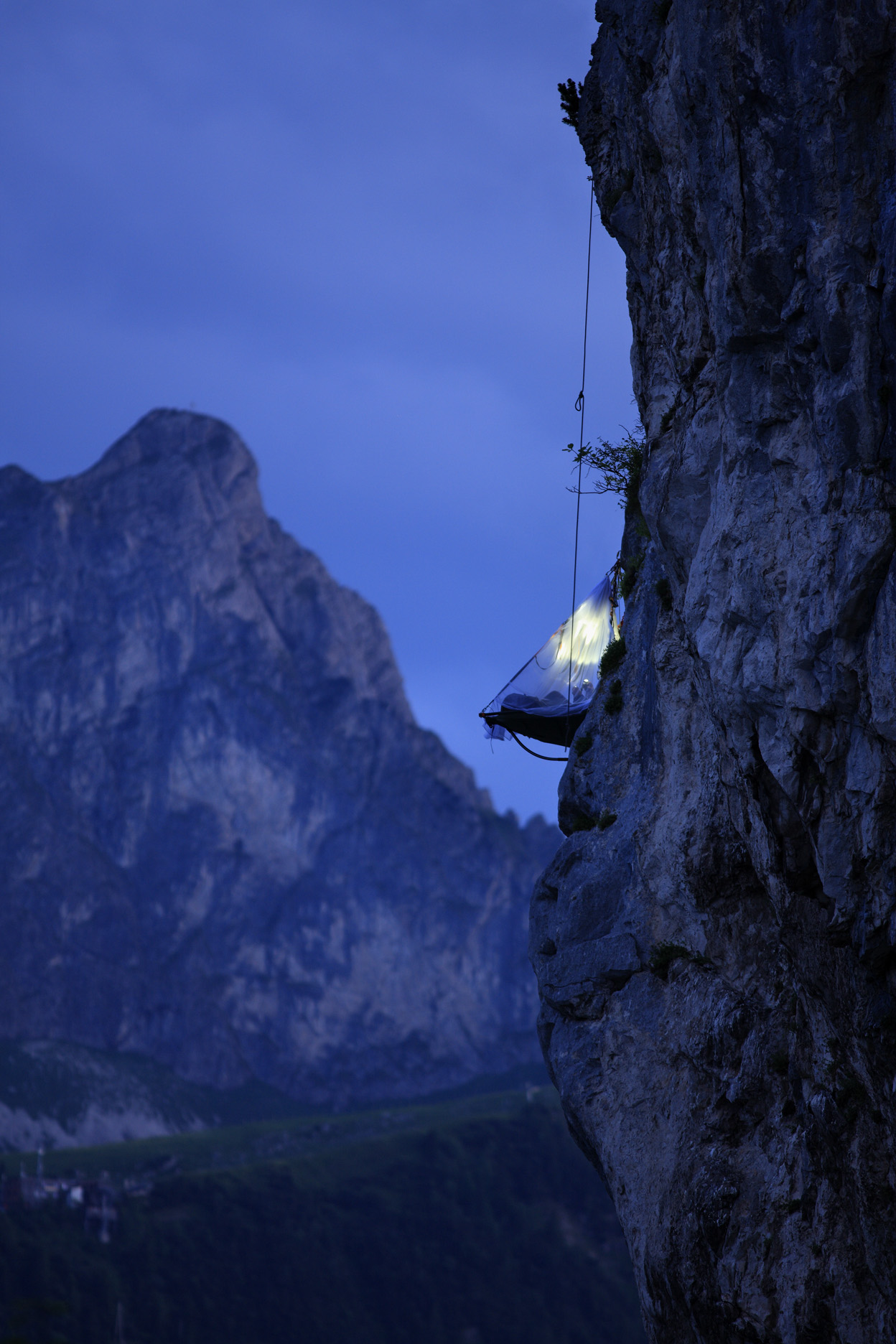 Ein bisschen Mut und Abenteuerlust erfordert eine Übernachtung im Biwak. Direkt am Felsen gibt es zwar keinerlei Komfort, dafür aber die absolute Ruhe der Berge und einen einmaligen Ausblick. Biwaks wurden ursprünglich für Expeditionen an gigantischen Felswänden mit bis zu 2.000 Metern Höhe entwickelt, in Pfronten können Kletterer aber auch in tieferen Lagen nachts am Felsen hängen. Zusammen mit einem Guide geht es per Seiltechnik eine gute halbe Stunde eine Felswand hinauf, wo dann das schwebende Bett an den Felsen gehängt wird und dem Schlaf in luftiger Höhe nichts mehr im Weg steht. Diese spektakuläre Nacht wird von den Bergprofis des Waldseilgartens Höllschlucht angeboten.