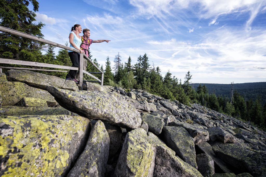 Das Fichtelgebirge im Nordosten Bayerns – zwischen Bayreuth und dem tschechischen Eger – erhebt sich auf bis zu 1.000 Meter. Ganze 3.700 Kilometer umfasst das abwechslungsreiche Wanderwegenetz. Die Touren führen die Urlauber durch stille Täler, frische Fichten- und Buchenwälder und vorbei an außergewöhnlichen Felsformationen – wie beispielsweise im Felsenlabyrinth Luisenburg, dem größten seiner Art in Europa. Riesige Felsbrocken, umrandet von Höhlen und Schluchten, bestimmen diese einzigartige Landschaftskulisse mit einem gigantischen Felsenmeer, schmalen Felsenschluchten und über 300 Millionen Jahre alten Granitsteinformationen. Auch Genussradler, Rennradfahrer und Mountainbiker sind im Fichtelgebirge dank vieler E-Bike Verleihstationen, Rad-Shuttle-Bussen, knackiger Steigungen und rasanter Abfahrten genau richtig. Wer es etwas ruhiger mag, begibt sich auf eine Waldbaden-Wanderung durch die leise Welt des tiefen Waldes mit seinen dunklen Fichten und beeindruckenden Granitblöcken und tankt Energie in dieser Kraftquelle.