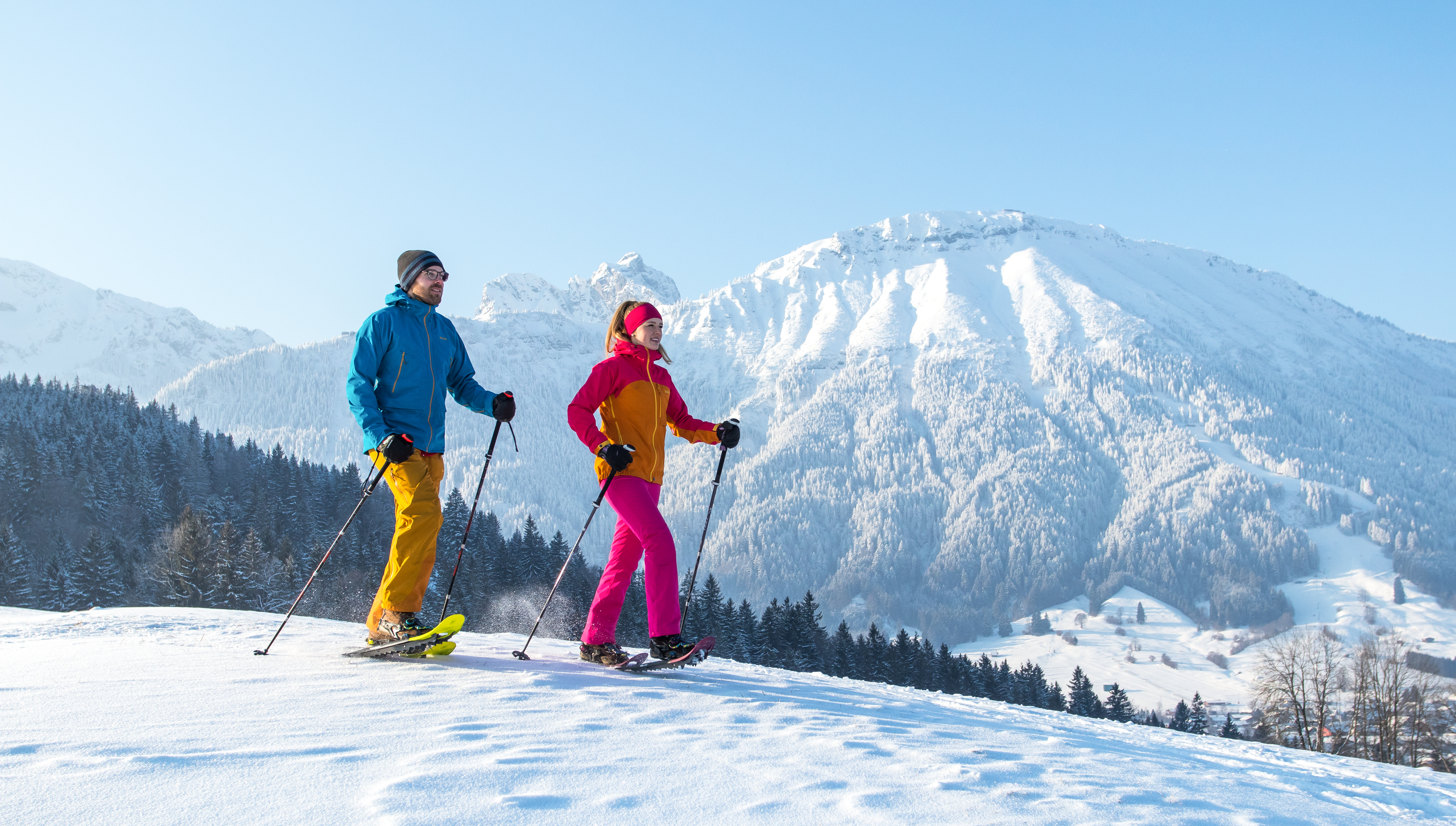 Erfahrene Schneeschuhgeher wagen den nächsten Schritt und machen sich mit dem einheimischen Guide auf den konditionell anspruchsvollen Weg über die vom DAV ausgezeichnete Route für „umweltfreundliches Skibergsteigen“ zum Gipfel des Schönkahlers. Unterwegs erfährt die Kleingruppe wertvolle Tipps zu Spurenwahl und Lawinenkunde. Da auf den 1.688 Meter hohen Berg keine gewalzten Wege führen, erleben sie die ursprüngliche, schneebedeckte Landschaft in ihrer naturbelassenen Schönheit. Am Gipfelkreuz angekommen, erwartet Wanderer ein Alpenpanorama auf die Allgäuer und Tiroler Berge.