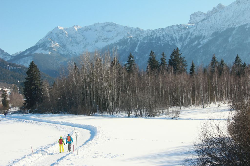 Ob mit oder ohne Schneeschuhe: Winterwandern in Pfronten bedeutetet nicht nur Bewegung, sondern auch klare Luft schnuppern, wohltuende Ruhe genießen und dabei die verschneite Winterlandschaft bewundern – eine Wohltat für Körper und Seele. Ob durch das Pfrontener Tal, hinauf auf die Berggipfel oder entlang der ebenerdigen Winterwanderwege lässt sich das Winterwunderland ideal mit Hilfe der magentafarbenen Wegweiser erkunden. Unterwegs gibt es zahlreiche Einkehrmöglichkeiten, von Gasthäusern bis zu urigen Hütten mit regionalen Köstlichkeiten. Die rund einstündige Tour durch das Pfrontener Moor, die Berger Moosrunde, eignet sich besonders gut für Familien, da hier kaum Höhenmeter bewältigt werden müssen. Der Lechgletscher hinterließ hier vor rund 14.000 Jahren, gegen Ende der letzten Eiszeit, den „Pfrontener See“. Noch heute erinnert die Moorlandschaft an die damalige Zeit. Langweilig wird es unterwegs bestimmt nicht, berichten spannende Infotafeln doch über die Entstehung des Moors sowie Spiel- und Lernstationen über die Tier- und Pflanzenwelt. Neugierige Wanderer können außerdem einen Aussichtsturm erklimmen, von wo aus sie einen weiten Blick über das Berger Moos genießen.
